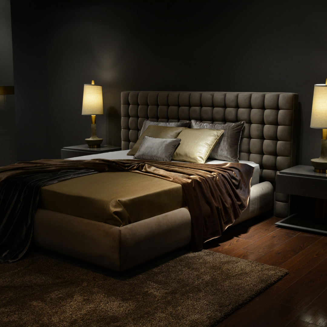 Lit Plateforme en Velours Gris Luxe – Queen / King